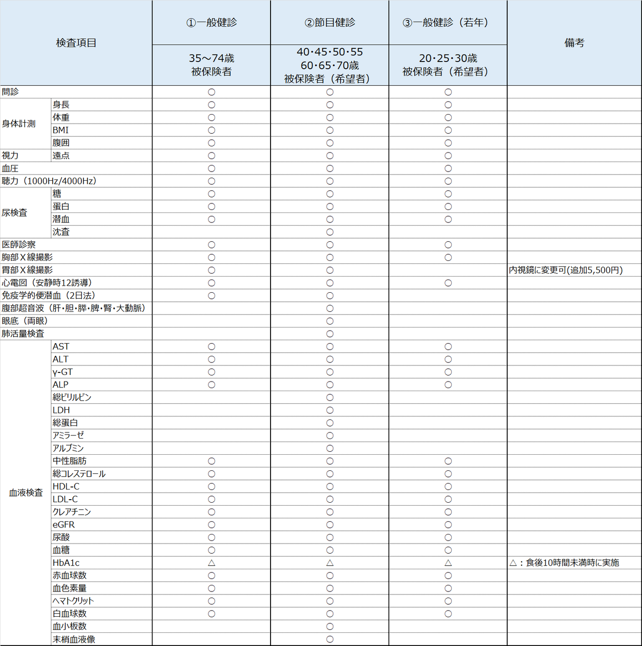 ①一般健診<35~74歳の方>自己負担額・・・5,500円(税込)